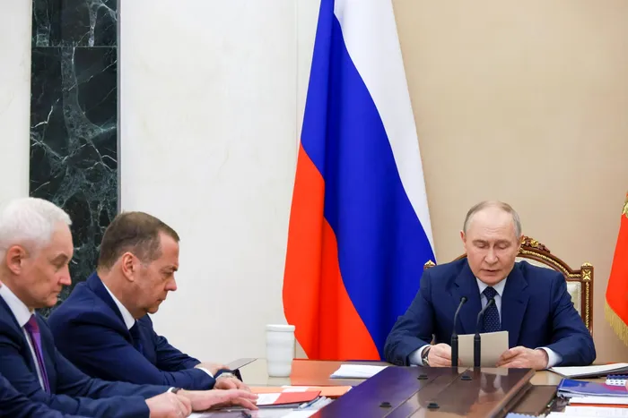 26 decembrie 2025 – Vladimir Putin, alături de Dmitri Medvedev (stânga-mijloc) | Foto – Profimedia Images