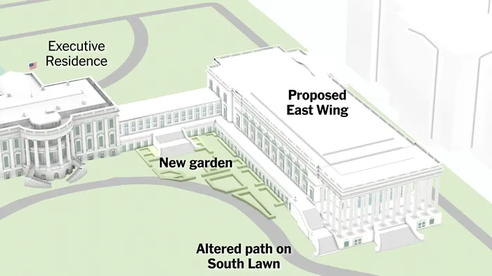 Trump a ordonat din octombrie anul trecut demolarea completă a Aripii de Est pentru a construi o sală de bal de aproximativ 8.200 de metri pătrați, menită să găzduiască până la 1.000 de persoane pentru dineuri de stat și recepții oficiale. Pe lângă aceasta, în spațiul public au apărut informații conform cărora sub această sală de bal se construiește un complex militar masiv, care va servi drept centru de operațiuni. Până în prezent, administrația Trump a precizat că s-au strâns aproximativ 350 de milioane de dolari doar din donații.