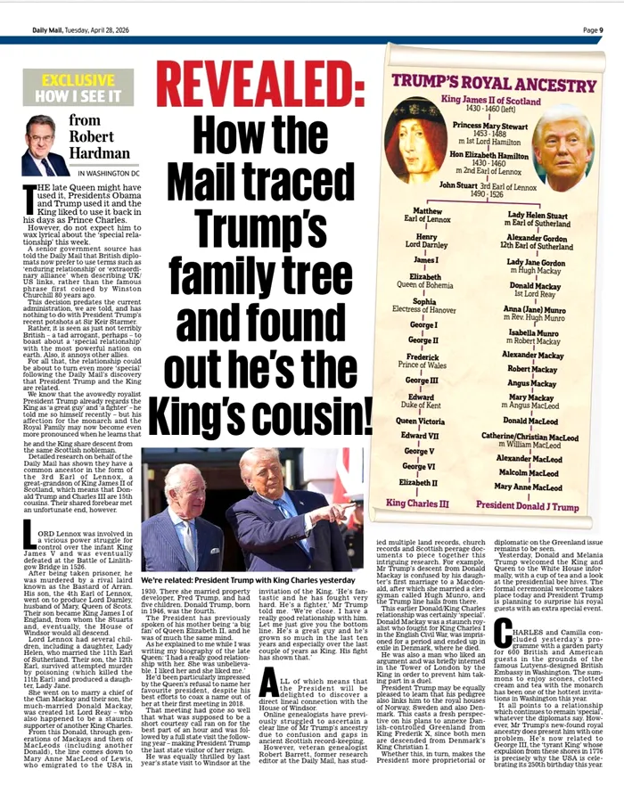Ziarul Daily Mail a dezvăluit, luni, că președintele este înrudit cu regele prin intermediul strămoșului lor comun, al treilea conte de Lennox, strănepot al regelui James al II-lea al Scoției.