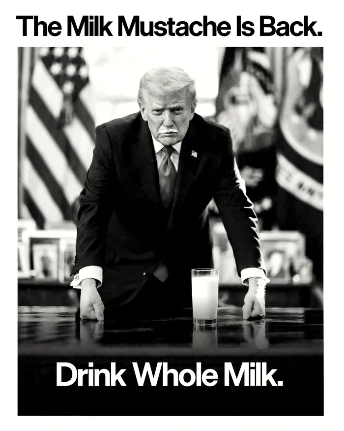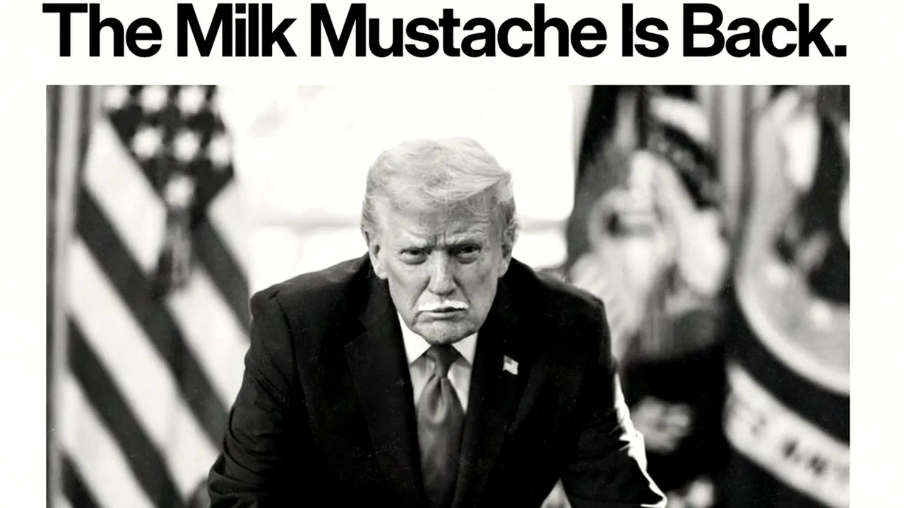Departamentul Agriculturii din SUA a postat și o fotografie cu liderul de la Casa Albă după ce a băut lapte, însoțit de mesajul: