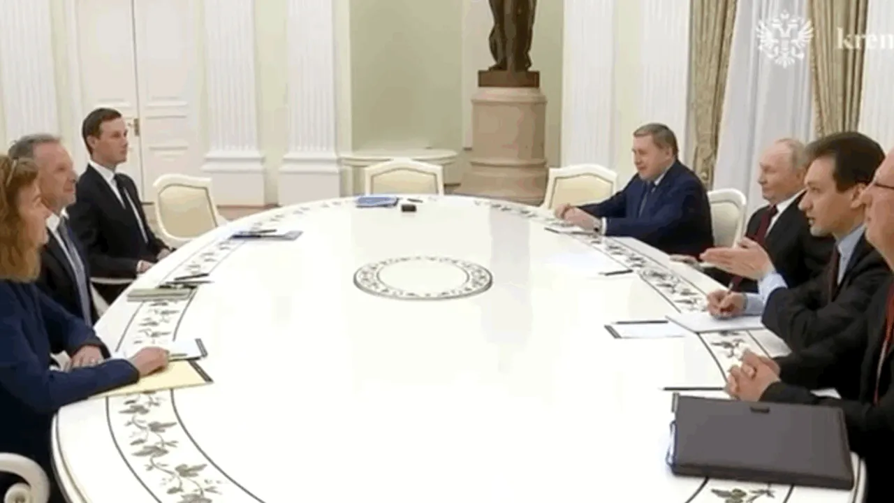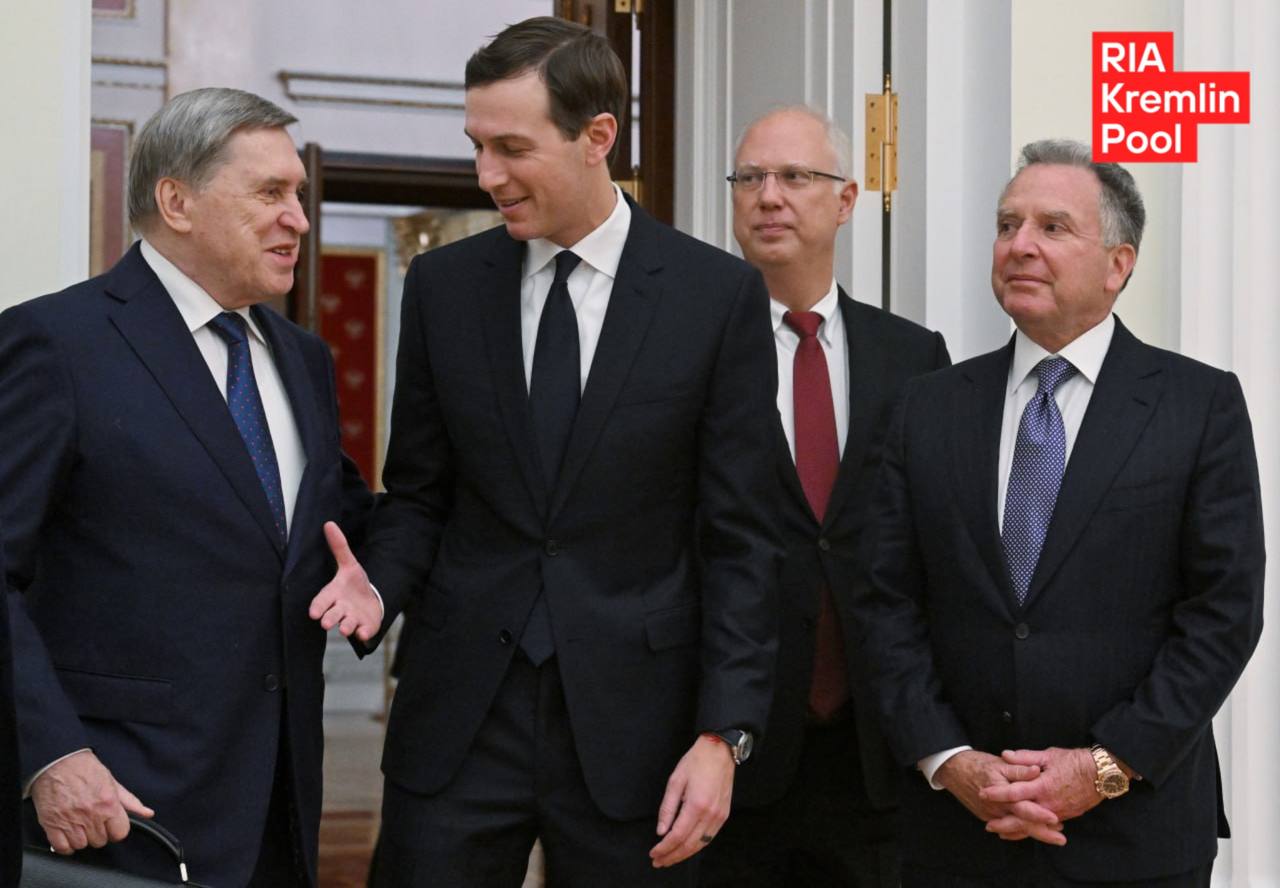 Kremlinul dă publicității primele imagini de la negocierile SUA – Rusia din Kremlin pe tema Ucrainei. Liderul rus stă la masă, în premieră, cu ginerele lui Donald Trump, Jared Kushner. La negocieri participă oamenii de încredere ai lui Putin pe negocierile cu SUA pe tema Ucrainei, Kirill Dmitrev și Yuri Ushakov. Din partea americană în negocieri mai este prezent Steve Witkoff, negociatorul lui Trump.
