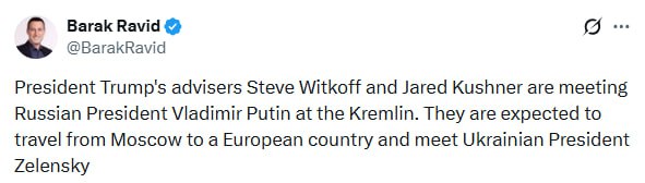 Întâlnirea decisivă pe Ucraina dintre ginerele lui Trump, J. Kushner, negociatorul SUA, S. Witkoff, și Vladimir Putin este în desfășurare la Kremlin.