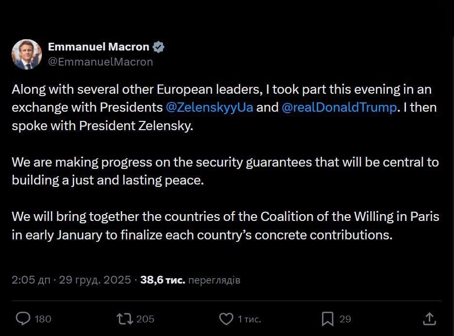În ianuarie, la Paris, va avea loc o întâlnire a „coaliției celor hotărâți”. Va fi stabilită contribuția fiecărei țări, a declarat președintele francez, Emmanuel Macron, pe X.