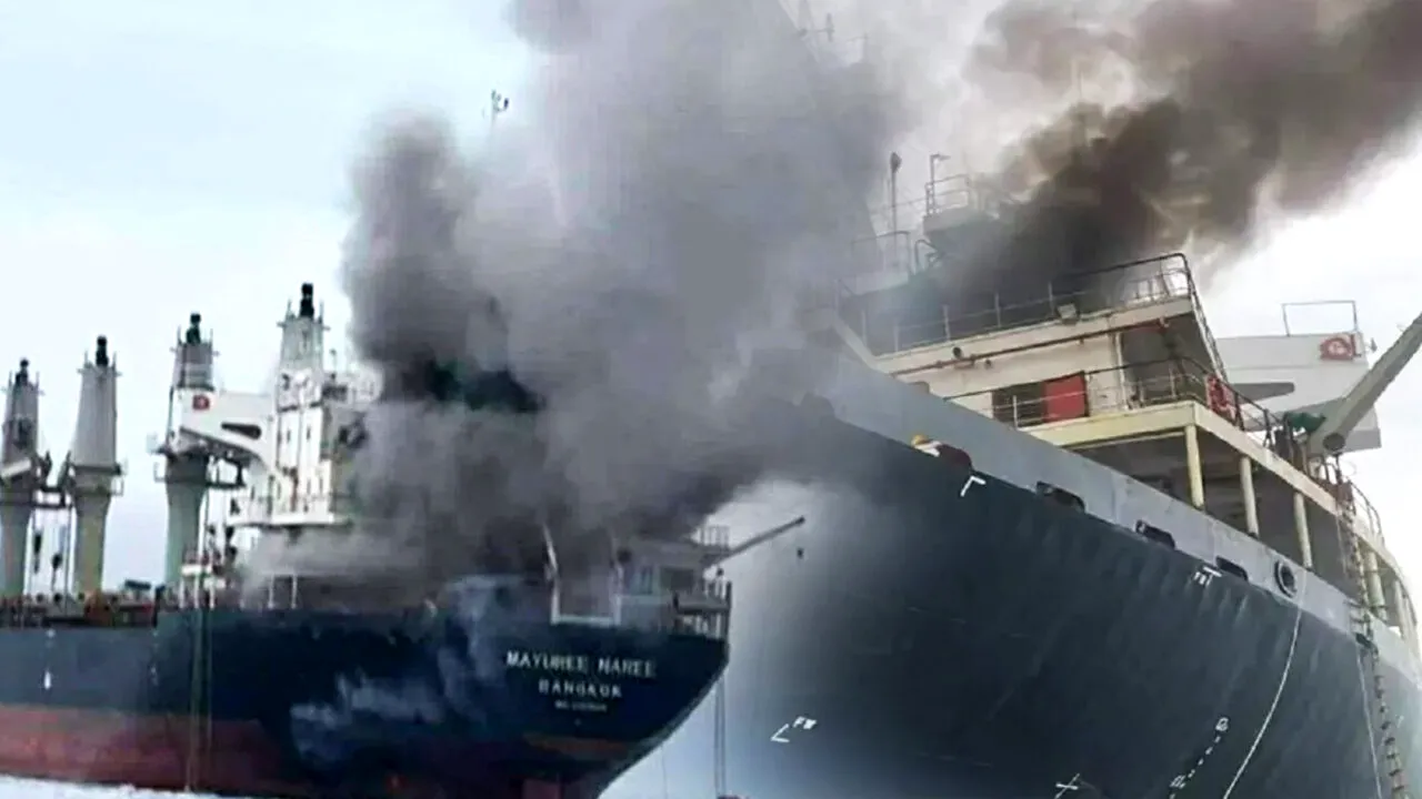 20 de membri ai echipajului thailandez a fost salvați de către o navă din Oman. Alți trei sunt dați dispăruți după explozia izbucnită la bordul navei, în sala motoarelor, potrivit Reuters.