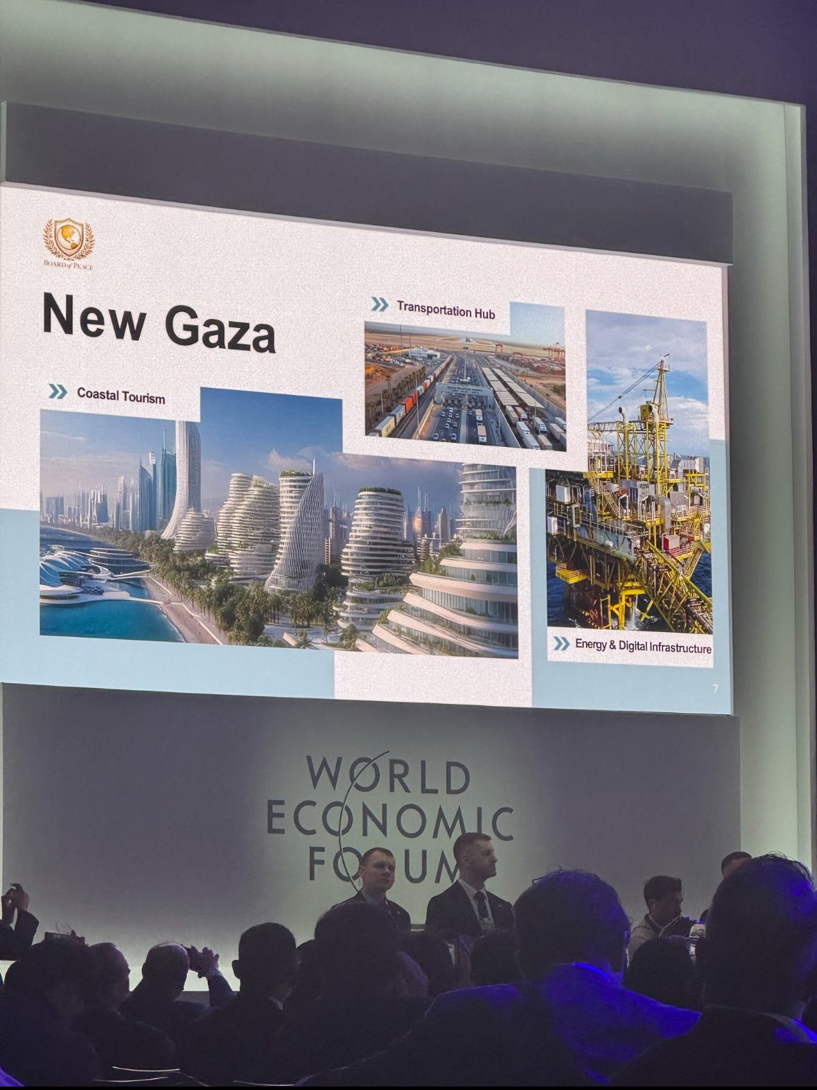 După semnarea cartei „Consiliului pentru Pace“, ginerele lui Trump, Jared Kushner, care a jucat un rol esențial în negocierea planului de pace pentru Gaza, a luat cuvântul la Davos. Acesta a dezvăluit un „plan general” pentru viitorul Gazei, și a prezentat o nouă hartă.