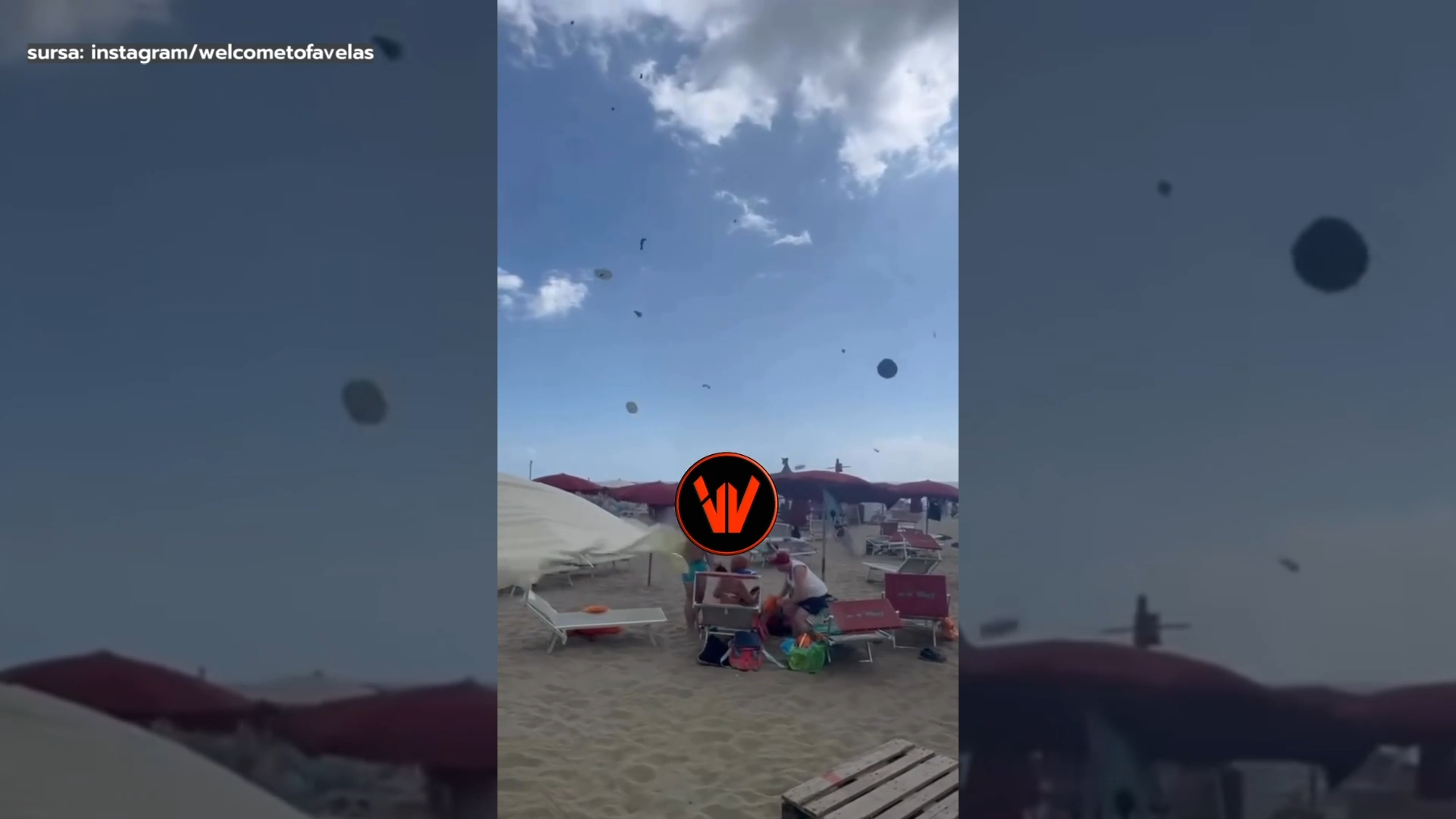 Incidentul s-a produs duminică pe o plajă din Maccarese, la nord de Roma, iar zeci de persoane care se aflau la plajă au început să fugă în momentul în care vântul puternic a început să smulgă umbrelele de soare și să răvășească tot în jur, scrie Daily Mail.