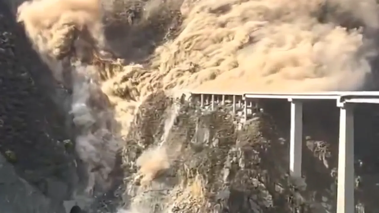 Marți după-amiază, condițiile de pe versantul muntelui s-au înrăutățit, declanșând alunecări de teren, ceea ce a dus la prăbușirea podului de acces și a platformei drumului, a adăugat acesta.