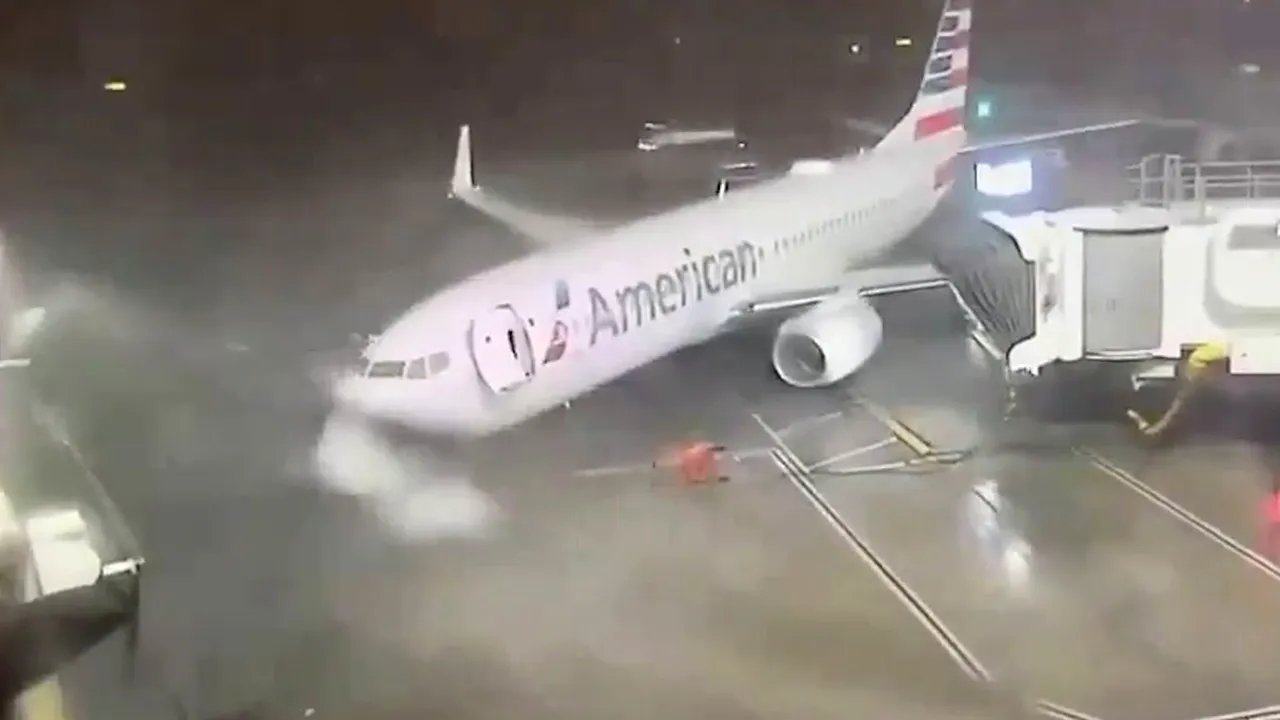 Un avion de tip Boeing 737-800 aparţinând companiei americane American Airlines a fost târât pe pista de decolare de vânt în timp ce pasageri aşteptau să urce la bord, pe Aeroportul Internaţional Fort Worth, în Texas. Pur și simplu aeronava a fost desprinsă de scara de îmbarcare ca un cărucior cu rotile în parcarea unui mall de rafalele de peste 77mph, adică peste 120 de kmh. Din fericire, nimeni nu a fost rănit.