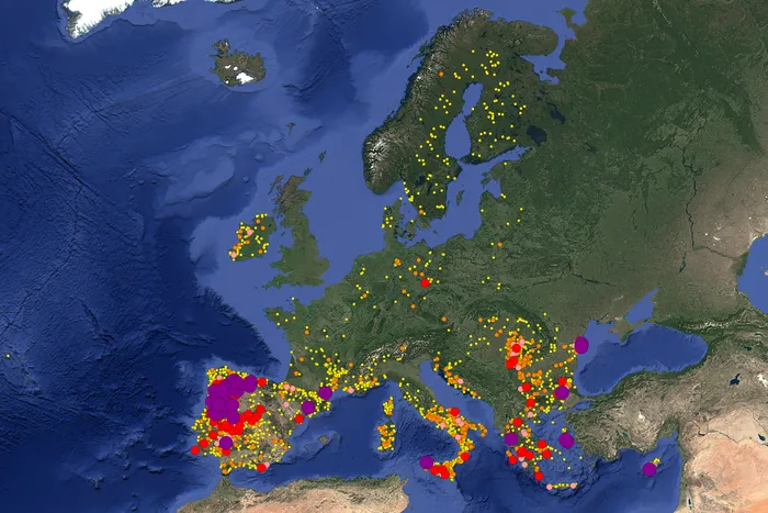 Incendiile cartografiate de Uniunea Europeană în anul 2025