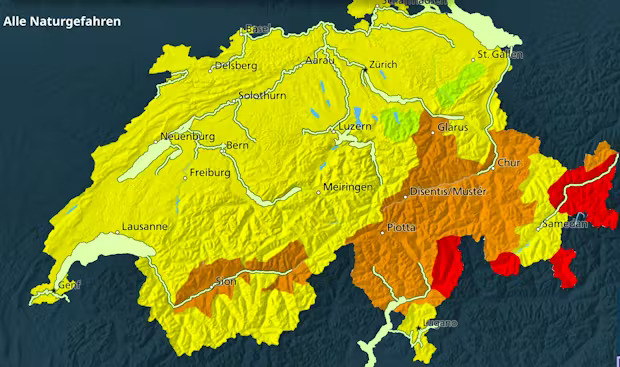 Există în prezent un risc foarte mare ca incendiul de pădure să se extindă în unele zone din Elveția. Oficiul Federal de Meteorologie și Climatologie, MeteoSwiss, a emis un nivel de avertizare 4 din 5 pentru unele regiuni din cantoanele Graubünden și Ticino. Pentru zone din cantoanele Glarus și Valais au fost aplicate niveluri de avertizare mai mici.