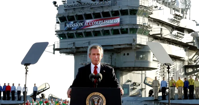 La 1 mai 2003, președintele american de atunci, George W. Bush, a ținut faimosul discurs televizat de pe portavionul USS Abraham Lincoln, cu bannerul care avea mesajul „Misiune îndeplinită” după ce forțele armate ale SUA au reușut cu succes să ocupe Irakul și să răstoarne regimul dictatorului Saddam Hussein.  Președintele a realizat și o demonstrație de zbor cu un pilot profesionist.