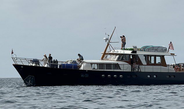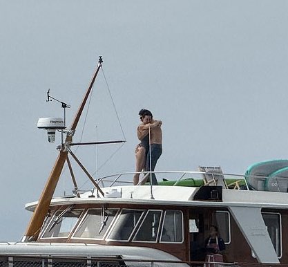 Cântăreața purta un costum de baie negru dintr-o singură piesă pe puntea iahtului „Caravelle,” în timp ce fostul premier, în vârstă de 53 de ani, era fără cămașă, doar într-o pereche de blugi.
