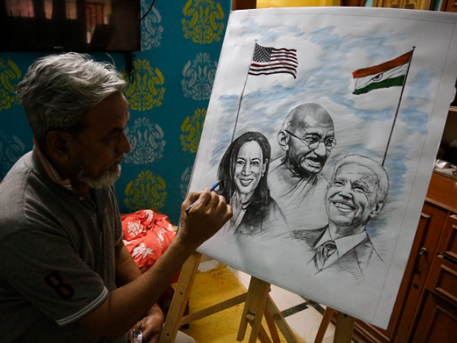 Un artist indian Aejaz Saiyed a lucrat la o opera de artă prin care i-a înfățișat pe președintele ales Joe Biden, vicepreședintele ales Kamala Harris și luptătorul indian pentru libertate Mahatma Gandhi, înainte de ceremonia de inaugurare a lui Biden. Inaugurarea lui Biden și Harris este programată să aibă loc miercuri.
