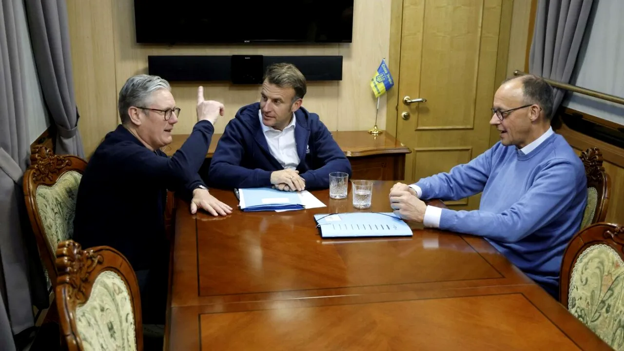 Macron, Starmer și Merz călătoreau din Polonia prin Ucraina cu trenul de noapte pentru a se întâlni cu președintele Zelenski și Donald Tusk, premierul polonez, sâmbătă dimineață.
