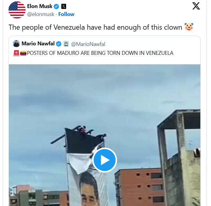 Câteva luni mai târziu, Musk și-a reiterat apelul la o schimbare de regim, spunând: „Este timpul ca poporul Venezuelei să aibă șansa unui viitor mai bun. Susțineți-o pe Maria Corina!”