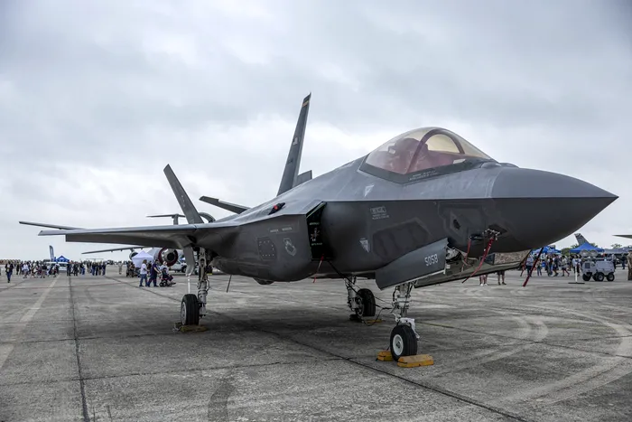 F35A Lightning II al United States Marine Corps în timpul Great Texas Air Show de la baza aeriană JBSA-Randolph fotografiat pe 6 aprilie 2024 în San Antonio.