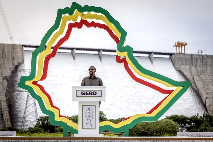 Prim-ministrul Etiopiei, Abiy Ahmed, în timpul ceremoniei oficiale de inaugurare a Marelui Baraj al Renașterii Etiopiene din Guba, pe 9 septembrie 2025.