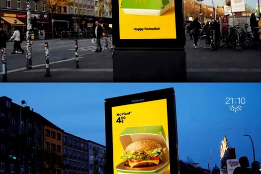 Panourile digitale din orașele germane sunt programate astfel încât, pe timpul zilei, să fie afișate doar ambalajele de mâncare, cum ar fi recipientul roșu de cartofi și cutiile pentru burgeri închise. Odată ce soarele apune, aceste ambalaje se umplu cu mâncare, fix în momentul în care musulmanii își încheie postul de Ramadan. Campania a fost creată de agenția germană Scholz & Friends, al cărei concept se concentrează pe eliminarea mâncării din reclame ca gest de respect pentru cei care sărbătoresc Ramadanul.
