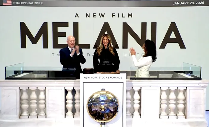 Melania Trump a sunat miercuri dimineață clopotul la deschiderea Bursei de Valori din New York pentru a semnala începerea tranzacțiilor. Acest gest a avut loc înainte de premiera noului său documentar care urmează să fie lansat pe 30 ianuarie. Cu o imagine mare în spatele ei care își promova documentarul, Melania a primit în dar un medalion și o placă de sticlă pentru a comemora ocazia.