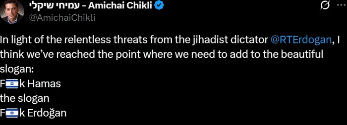 Amichai Chikli, ministrul israelian al Diasporei evreiești, l-a înjurat pe președintele turc Recep Tayyip Erdoğan pe platforma X.