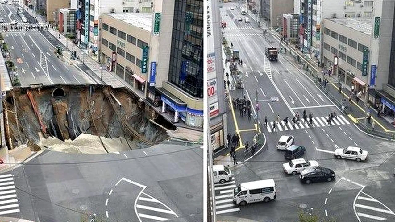 La două săptămâni după ce japonezii au arătat ce înseamnă eficiența, și au acoperit o groapă uriașă dintr-o intersecție, aceasta a apărut din nou, iar muncitorii au fost nevoiți să o astupe din nou.