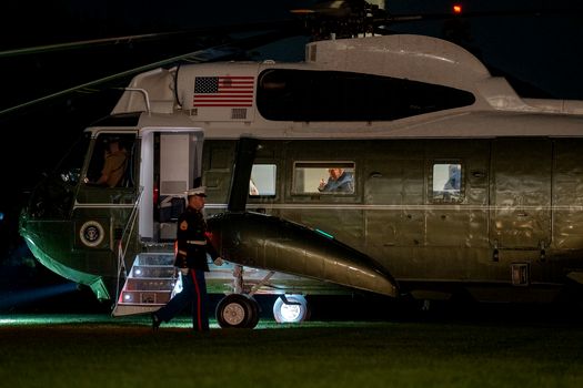 După ce și-au încheiat conversația, cuplul a coborât din elicopter și a traversat peluza Casei Albe, ținându-se de mână, în timp ce președintele le făcea cu mâna reporterilor.
