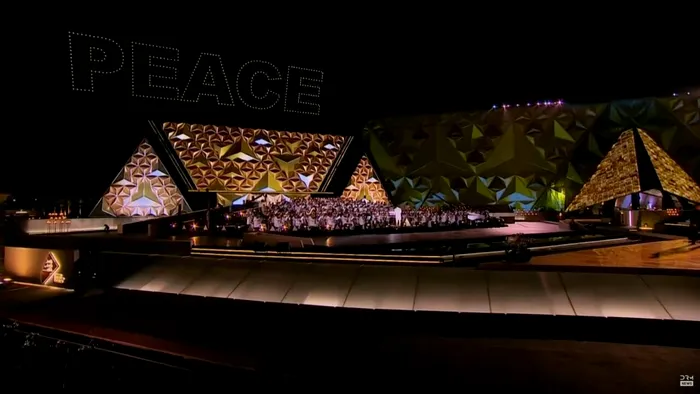 Dar cel mai emoționant moment a fost când dronele au alcătuit cuvântul „PACE” în limba engleză (cu literele alfabetului latin, deși egiptenii vorbesc și scriu în arabă), în contextul în care în vecinătate este un război sângeros care durează de 2 ani.
