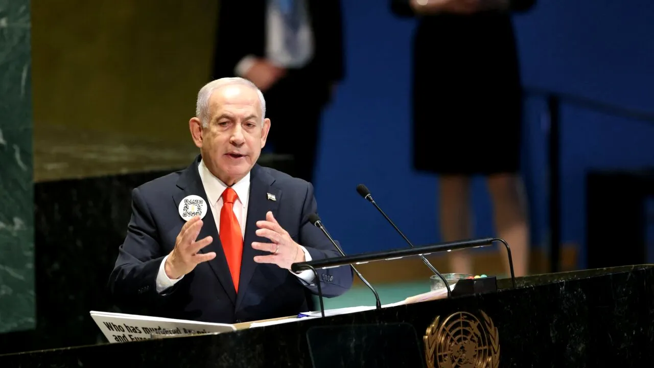Premierul israelian, Benjamin Netanyahu, a criticat vehement, în discursul rostit vineri la reuniunea Adunării Generale a ONU, decizia a numeroase țări occidentale de recunoaștere a existenței statului palestinian, catalogând-o drept o formă de recompensare a terorismului după atacurile islamiste produse pe 7 octombrie 2023.