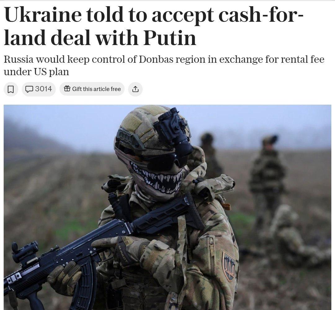 📍În proiectul așa-numitului plan de pace american este prevăzută condiția ca Rusia să plătească Ucrainei chirie pentru ocuparea Donbasului. Suma plăților nu este specificată.