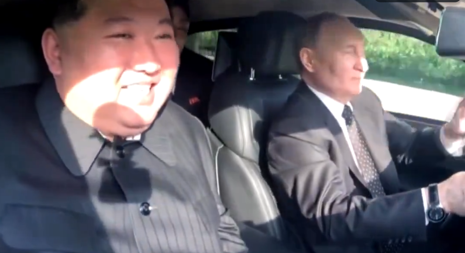 De această dată, cei doi dictatori sunt filmați în interiorul limuzinei, în timp ce conduc pe rând mașina rusească.