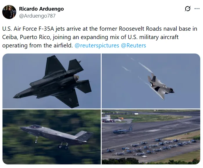 Pe 21 decembrie 2025, potrivit Army Recognition, o fotografie realizată de Ricardo Arduengo – fotograf independent specializat în știri, cultură și viața de zi cu zi din Puerto Rico și Caraibe -, care arăta 20 de avioane de vânătoare F-35 aliniate la Baza Roosevelt Roads din estul Puerto Rico, a cristalizat o nouă fază în consolidarea forțelor armate americane din Caraibe, la doar câteva sute de kilometri de Venezuela.