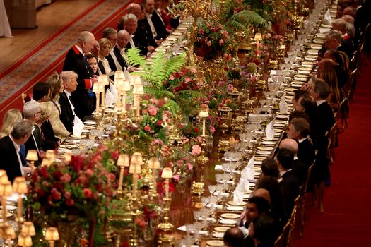 Prima pagină » Știri externe » Opulență fără margini la BANCHETUL de stat organizat cu ocazia vizitei președintelui Donald Trump în Marea Britanie. Ce au avut invitații în meniu