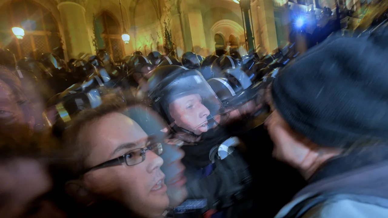 Unii indivizi au încercat să pătrundă în Parlament, fapt ce a provocat confruntări cu forțele de ordine. Sute de polițiști au fost mobilizați la intrarea în clădire.