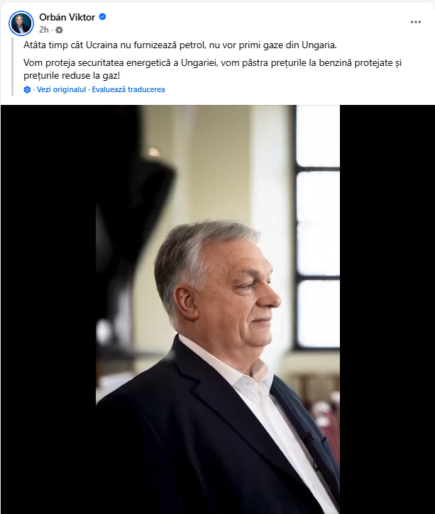 „Până acum ne-am apărat cu succes împotriva șantajului ucrainean, datorită prețurilor protejate, maghiarii plătesc cele mai mici prețuri la benzinării, trebuie luate măsuri suplimentare pentru a rupe blocada petrolieră și a asigura aprovizionarea sigură cu energie a Ungariei. Atâta timp cât Ucraina nu furnizează petrol, nu va primi gaze din Ungaria. Vom proteja securitatea energetică a Ungariei, vom menține prețul protejat la benzină și prețul redus la gaze”, a mai spus premierul Ungariei.