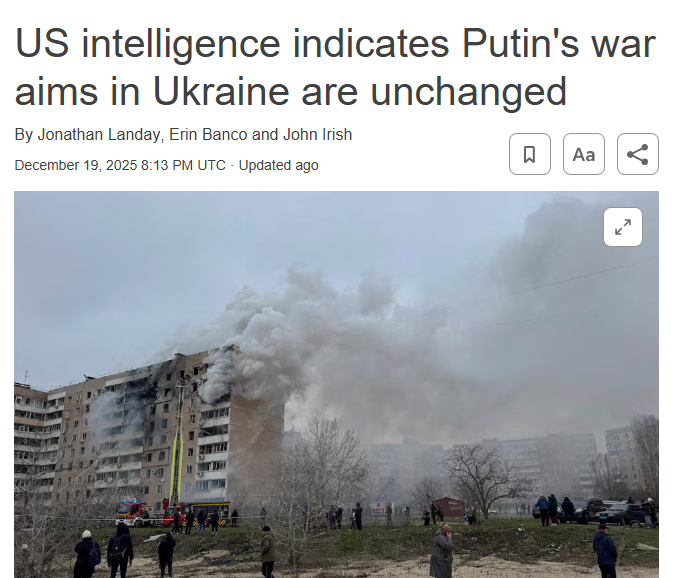 Rapoartele serviciilor secrete americane continuă să avertizeze că președintele rus Vladimir Putin intenționează să cucerească întreaga Ucraină, au declarat mai multe surse Reuters. Aceste afirmații le contrazic pe cele ale unor oficiali americani conform cărora Moscova este pregătită pentru pace.