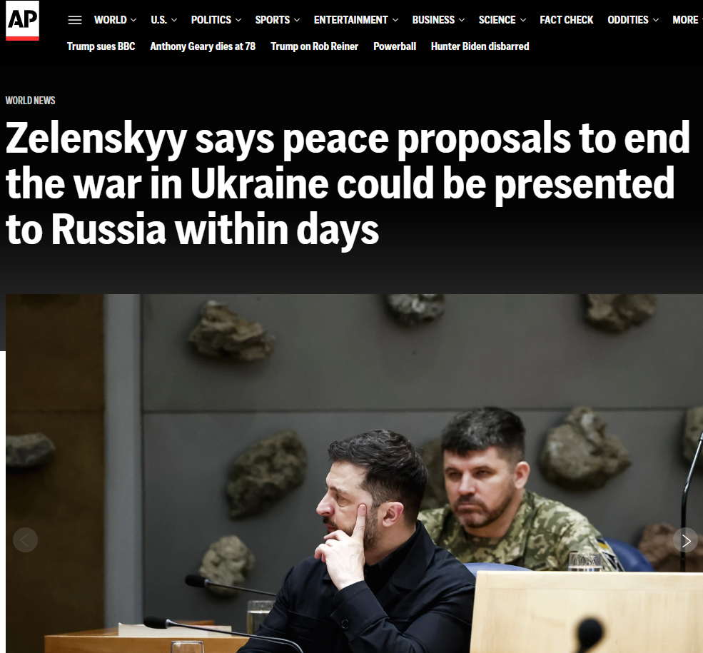 Propunerile pentru un acord de pace ar putea fi finalizate în câteva zile, după care emisarii americani le vor prezenta Kremlinului, a declarat reporterilor președintele ucrainean Volodimir Zelenski, relatează Associated Press.