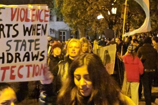 Participanţii au scandat sloganuri precum „Ruşine, ruşine!” sau „Nu suntem Turcia, nu suntem Rusia”, făcând referire la singurii doi semnatari ai Convenţiei care s-au retras până în prezent şi la presupunerile că autorităţile ruse ar fi permisive în ceea ce priveşte violenţa de gen.