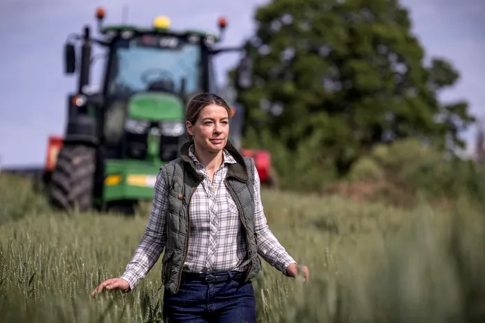 Celine Imart, fermieră și europarlamentar, verifică producția de grâu de la ferma ei din Cuq-Toulza, sud-vestul Franței, pe 17 mai 2024.