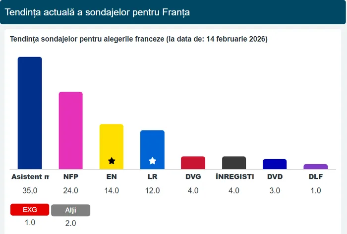 Potrivit celui mai recent sondaj realizat de platforma PolitPro, tendințele politice din Franța araă o creștere semnificativă a partidului Rassemblement National față de alegerile precedente, în timp ce Coaliția prezidențială a lui Emmanuel Macron, Ensemble, și alianța de stânga, Nouveau Front Populaire, înregistrează scăderi față de alegerile precedente din iunie 2024.