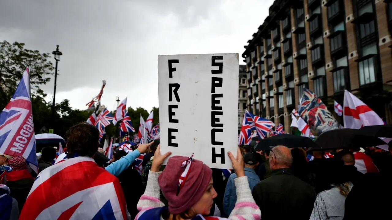 Peste 100.000 de oameni au ieșit să demonstreze la Londra, un miting „pentru libertatea de exprimare”, un subiect intens dezbătut în Marea Britanie.