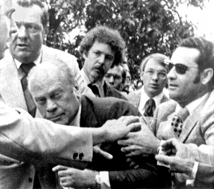 Gerald Ford a supraviețuit la două tentative de asasinat cu pistolul în doar 17 zile, ambele în septembrie 1975. La scurt timp după demisia lui Richard Nixon care, ce să credeți, a fost și el ținta a două tentative eșuate, Ford a intrat prima dată în vizorul lui Muharem Kurbegovic. Acesta a fost reținut după ce a amenințat că va arunca o bombă cu gaz neurotoxic asupra președintelui.