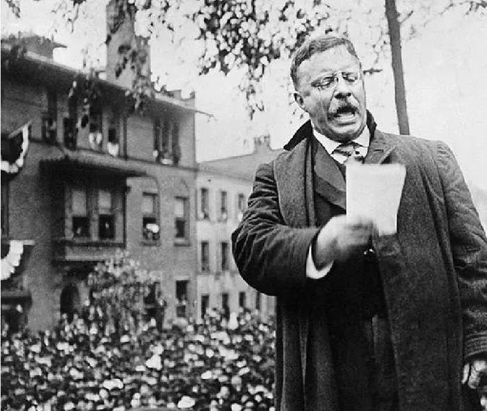 Pe locul doi în topul președinților care au supraviețuit se află Theodore Roosevelt, care a fost împușcat în piept în timp ce făcea campanie. Glonțul a fost încetinit de tocul de ochelari și de manuscrisul discursului său. Pe 4 octombrie 1912, un cârciumar pe nume John Schrank l-a împușcat pe Roosevelt, care dorea să candideze pentru un al doilea mandat de președinte. Deși acesta și-a continuat eroic discursul, a ajuns în cele din urmă la spital cu o coastă ruptă.