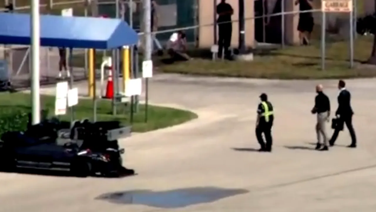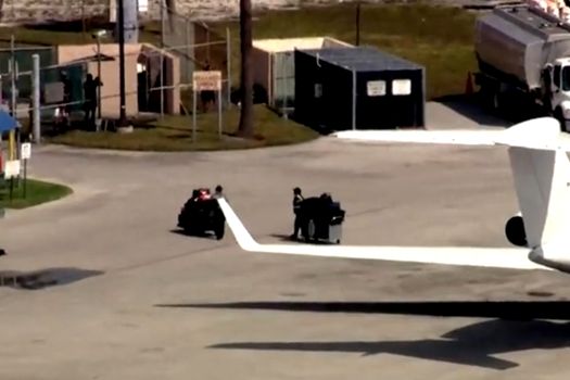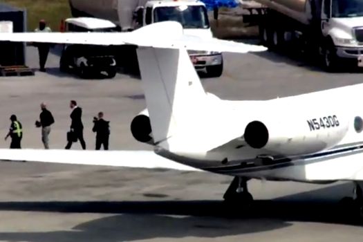 Aterizarea aeronavei fraților Tate a fost surprinsă de televiziunea WSVN din Florida. După ce aeronava s-a oprit pe pistă, mai întâi a fost coborâtă mulțimea de bagaje cu care au ajuns la Florida frații Tate.