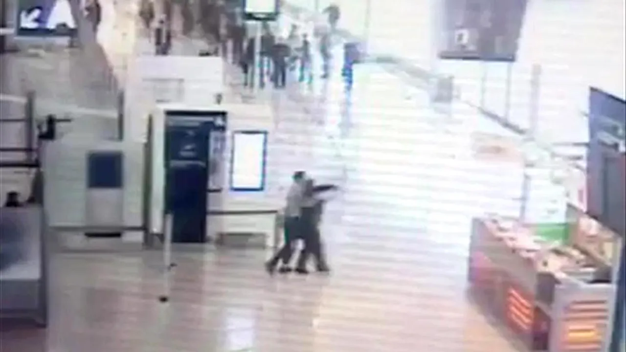 Agenția The Associated Press a difuzat luni o înregistrare a sistemului de supraveghere video care surprinde derularea incidentului. Imaginile surprind momentul în care agresorul a luat arma militarului, o femeie, după care a ținut-o ostatică, fiind împușcat mortal după câteva minute de colegii acesteia.