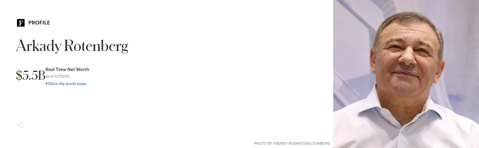 Potrivit Forbes, Arkady Rotenberg – prietenul lui Putin și partener de judo al președintelui Rusiei – are o avere estimată la 5,5 miliarde dolari.