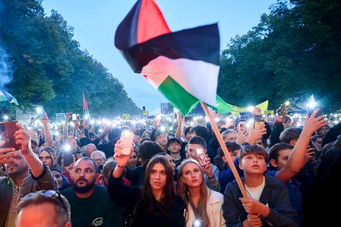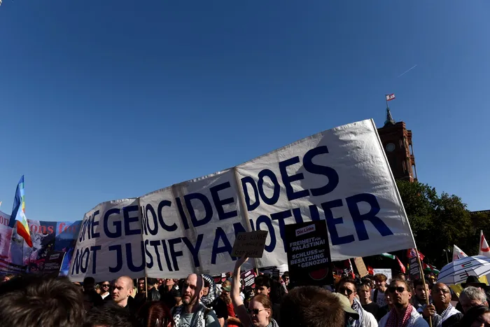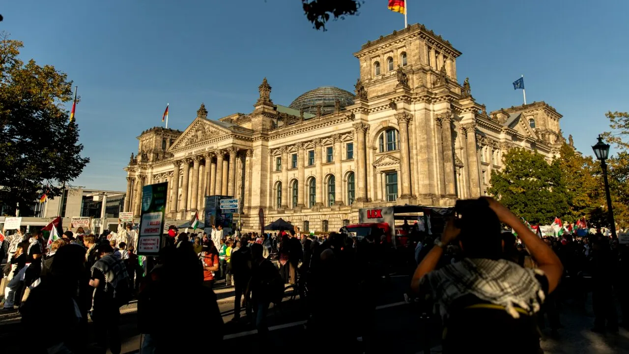 Zeci de mii de protestatari au ieșit sâmbătă pe străzile capitalei Germaniei în semn de solidaritate cu palestinienii din Fâșia Gaza.