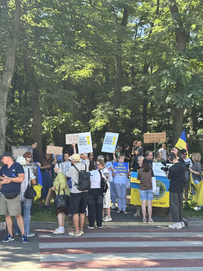 Protestatarii, printre care se află și rude ale ostaticilor ucraineni capturați de forțele ruse, îi cer președintelui Donald Trump, „care și-a asumat rolul de pacificator”, să ridice problema unui schimb de prizonieri în timpul negocierilor, în loc să discute despre „schimburi de teritorii ucrainene”.