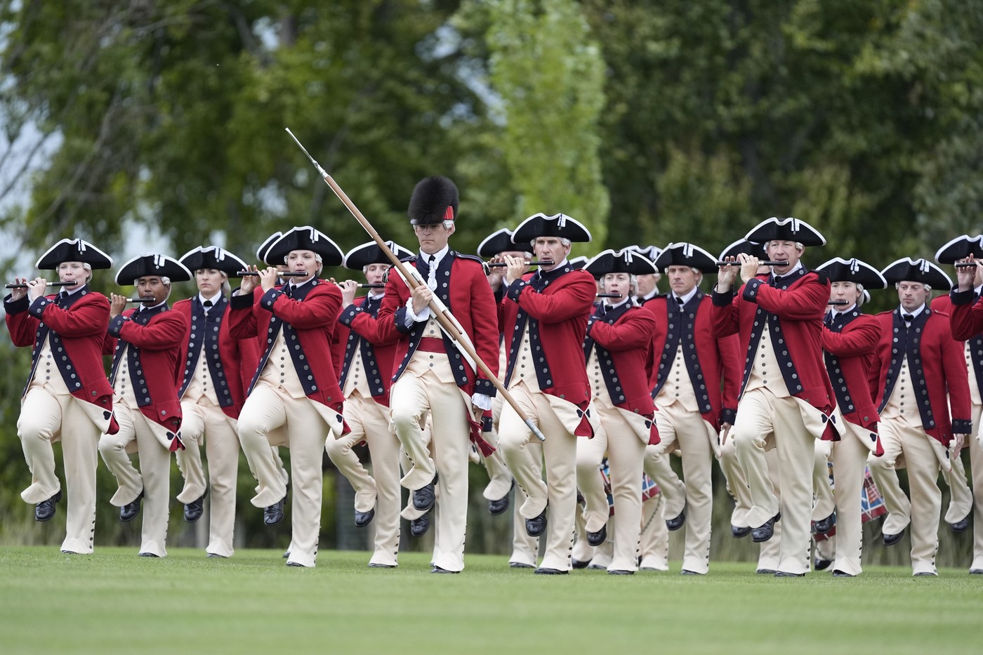Regele Charles a părut să-i arate lui Donald Trump pe membrii Old Guard Fifes and Drums în timp ce orchestra Armatei americane a trecut prin fața invitaților.