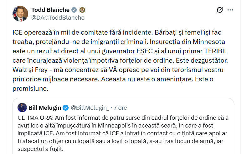 Tensiunile au urcat la cote maxime în în Minneapolis, după ce un alt ofițer federal a împușcat un tânăr în picior, miercuri, în timpul unei tentative de arestare. Incidentul a declanșat noi proteste anti ICE, pe fondul tensiunilor persistente după crima comisă de un alt ofițer ICE când a tras trei focuri de armă, de la mică distanță asupra lui Renee Nicole Good.