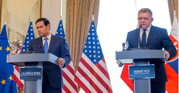 Marco Rubio, Secretarul de Stat SUA (stânga) și Robert Fico, premierul Slovaciei (dreapta)